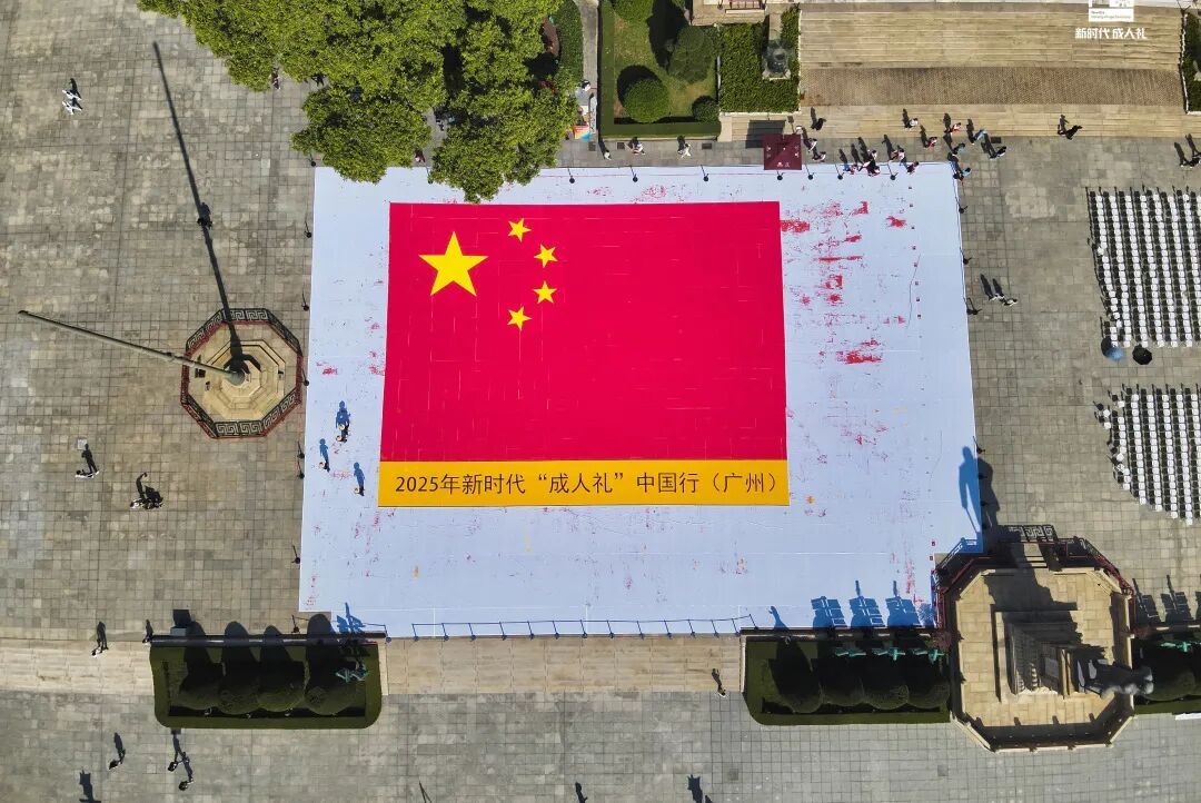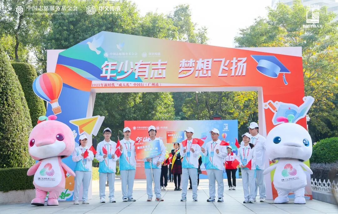 仪式上,动物园南门社区城市志愿服务站志愿者与十五运会吉祥物 “喜洋洋”“乐融融” 组成首方阵,“羊城小市长”“羊城少年”、华侨中学港澳班等湾区学子及公益青年、心智障碍青年代表等方阵依次入场。活动还邀请革命先辈吴玉章的孙女、中国东方文化研究会红色文化传承理事长吴本立致辞,分享革命精神与家国情怀,将红色教育融入成长仪式,让这场成人礼成为沉浸式红色文化课堂。