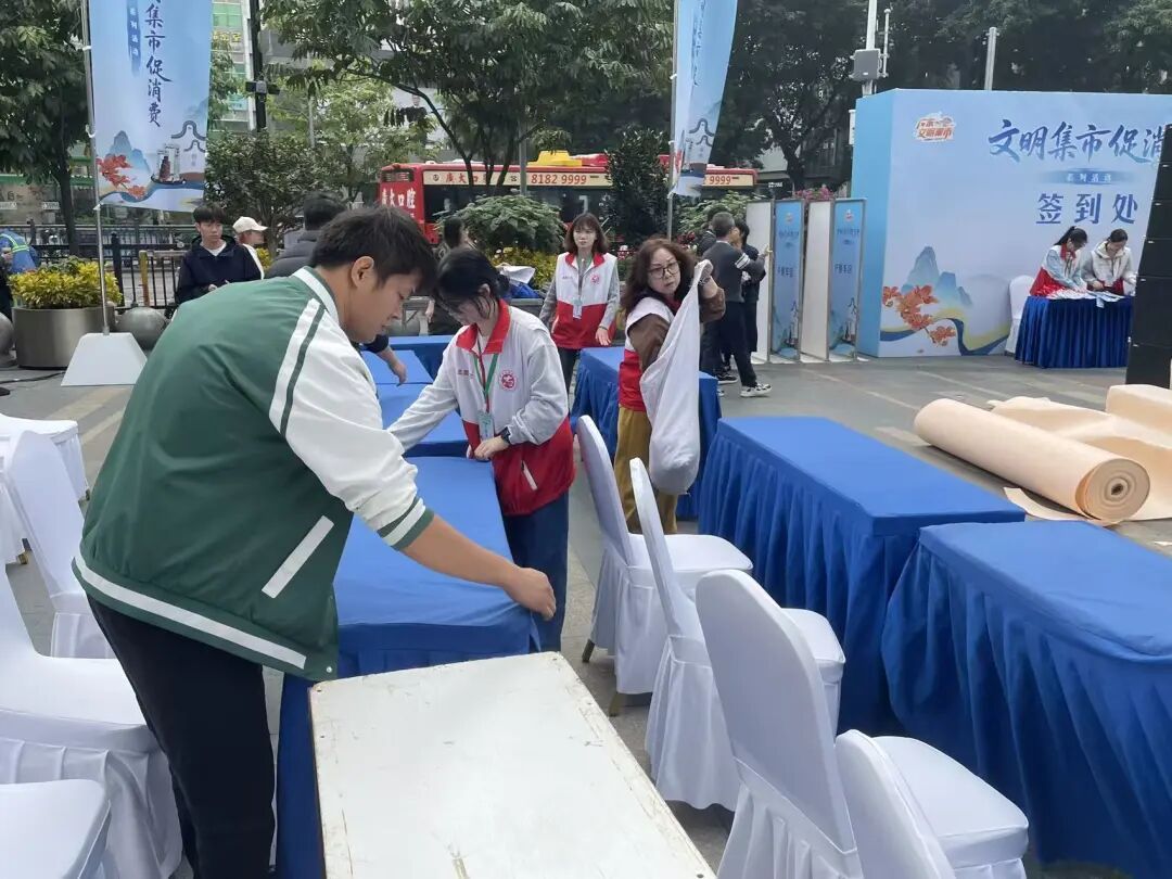 志愿力量也为这场活动注入了温暖的底色。在共青团越秀区委员会的指导、支持和组织下,广州志愿驿站旗舰站组织招募将近30位志愿者,积极响应到场参与志愿服务,负责舞台协助、仪式彩排、摊位巡查、秩序维护等工作,成为文明集市中一道亮丽的风景线。